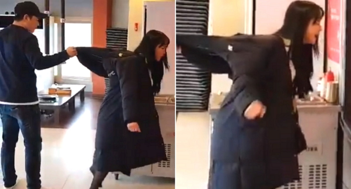 알고보니 뒤에 있던 매니저가 홍진영의 옷을 잡고 버티고 서있다.