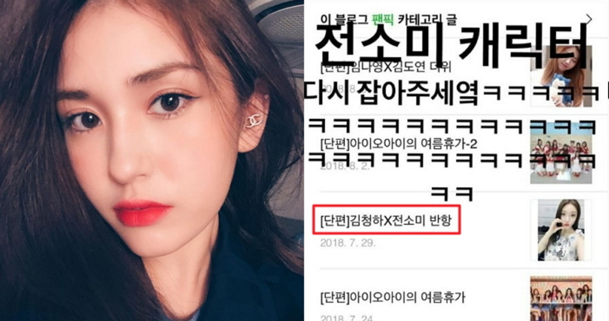해당 사진에는 '팬픽' 카테고리가 있었다. 그곳에는 "아이오아이의 여름휴가", "김청하X전소미 반항", "정채연X최유정X전소미 시험공부"라는 제목의 팬픽 여러 편이 올라와있다.