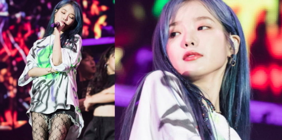 아이유는 망사 스타킹을 신고 머리카락의 일부를 딴 채 등장해 치명적인 매력을 발산하기도 했다.