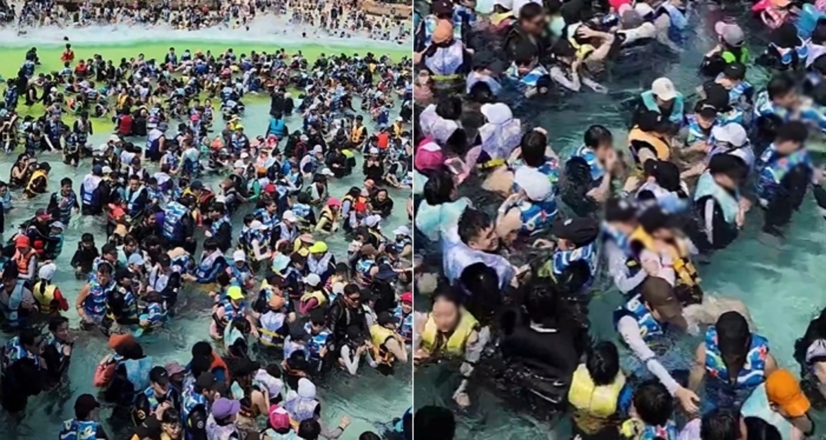 영상 속에는 물놀이를 하러 간 이들이 떼 지어 파도풀을 이용하고 있는 장면이 담겼다.