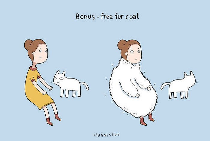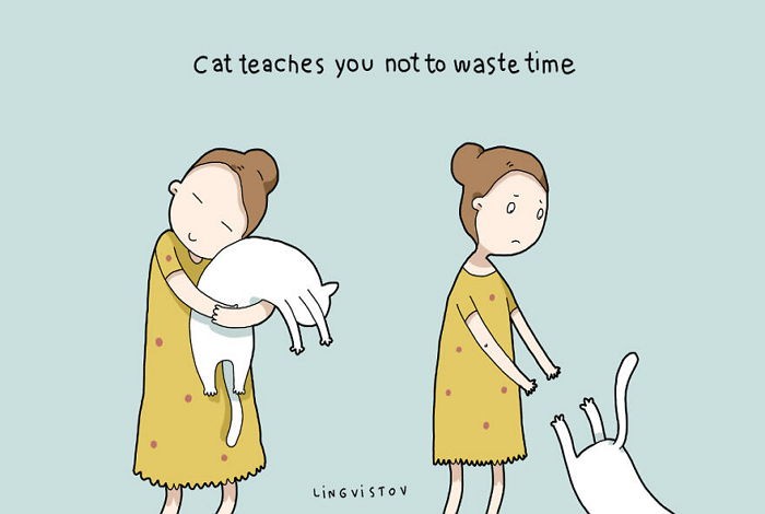 지난달 24일(현지 시간) 온라인 미디어 보어드판다는 다른 반려동물과는 확실히 다른 고양이의 습성을 표현한 일러스트를 소개했다.