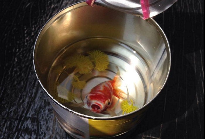 어항 속 물고기는 라이가 레진과 아크릴을 이용해 만든 공예품으로, 매우 사실적으로 표현돼 있어 마치 물고기가 헤엄치는 듯한 착각을 불러 일으킨다.