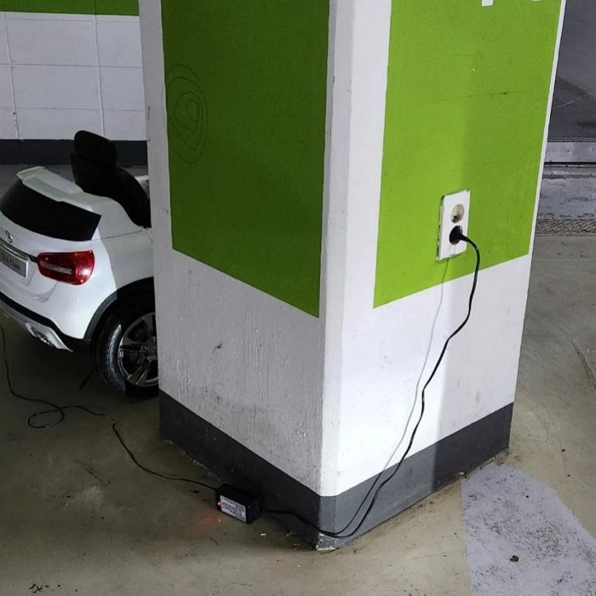공유된 사진에 따르면 한 아파트 지하 주차장 콘센트에는 어린이용 장난감 자동차가 연결돼 '충전'되고 있습니다.