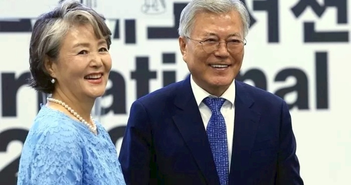 문재인 전 대통령과 부인 김정숙 여사가 18일 오후 서울 강남구 삼성동 코엑스에서 열린 2025 서울국제도서전 한국에서 가장 좋은 책 시상식에 참석하고 있다. / 뉴스1