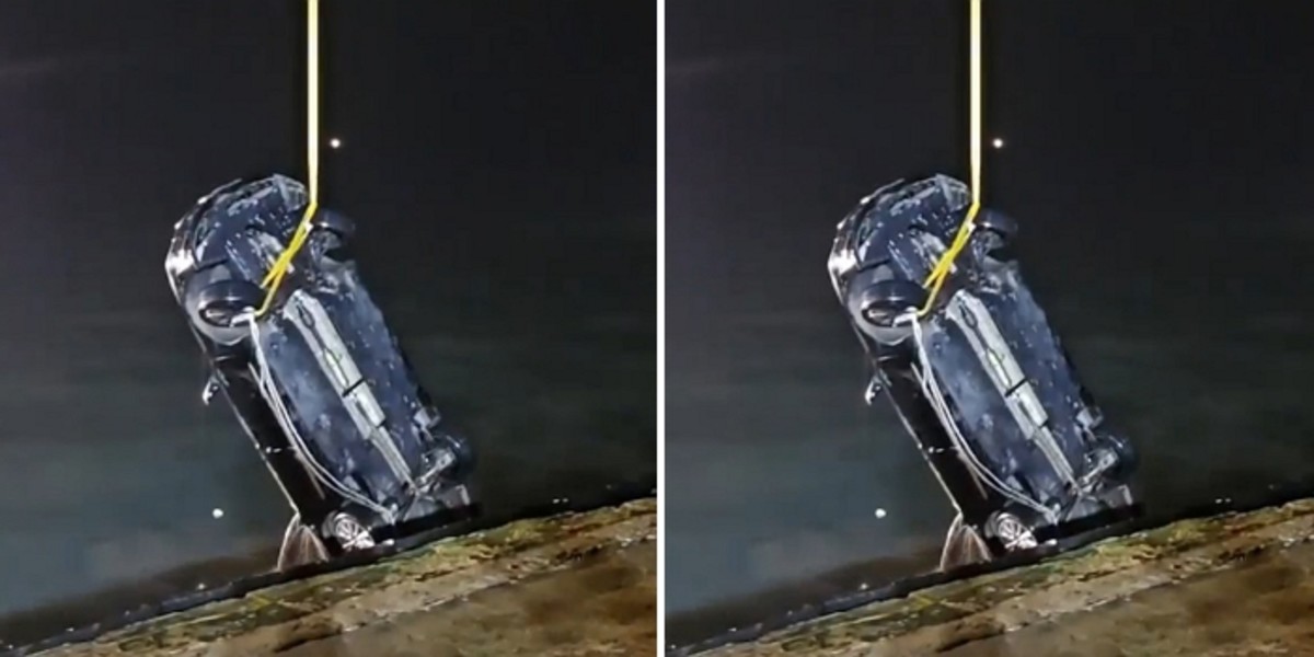 목포해경이 2일 진도군 진도항에서 일가족 4명이 탑승한 차량을 인양하고 있다. / 사진 제공 = 목포해경