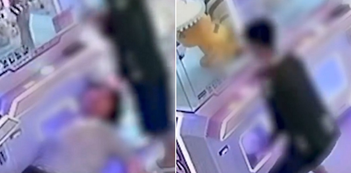남성들은 인형뽑기 기계 앞에 드러누워 안쪽으로 손을 넣어 인형을 잡아챘습니다. 약 20분 동안 대형 인형과 소형 인형 여러 개를 훔친 후, 차량을 타고 현장을 떠났습니다.