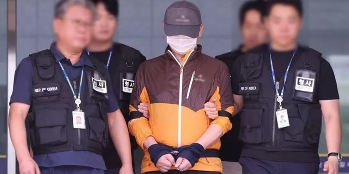 사제 총기 살해 사건 피의자 A 씨(62·남)가 30일 오전 인천논현경찰서에서 검찰로 송치되고 있다. A씨는 지난 20일 오후 9시 31분께 인천시 연수구 송도 아파트에서 사제 총기로 산탄을 발사해 아들 B씨를 살해한 혐의를 받고 있다. 2025.7.30 / 뉴스1