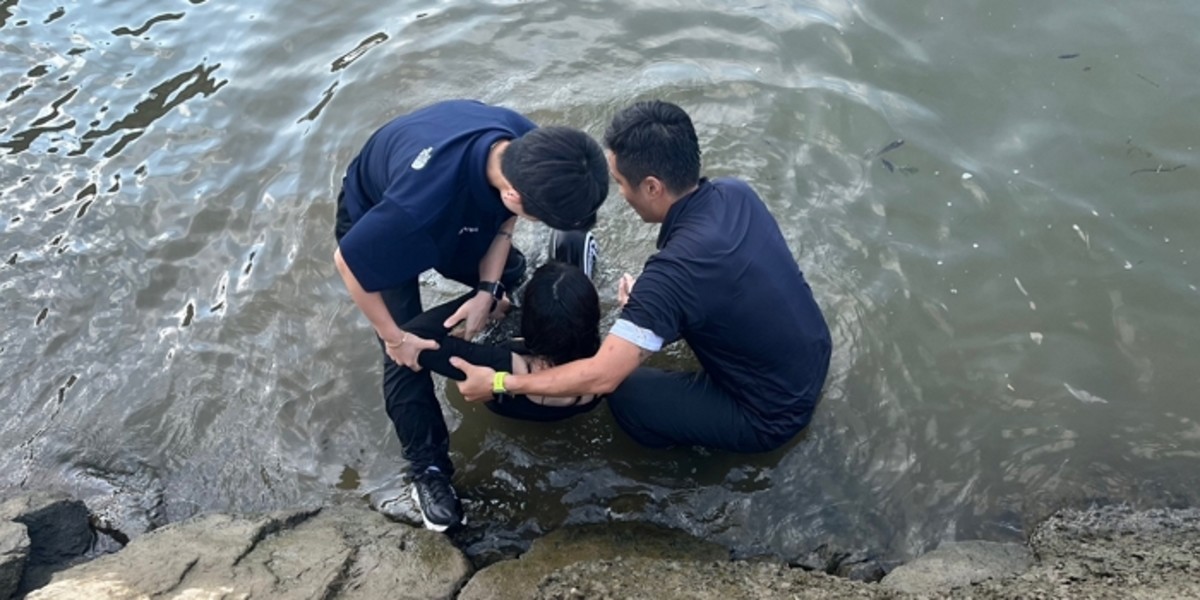 순찰반원들은 망설임 없이 직접 물에 뛰어들어 여성의 생명을 구해냈습니다.