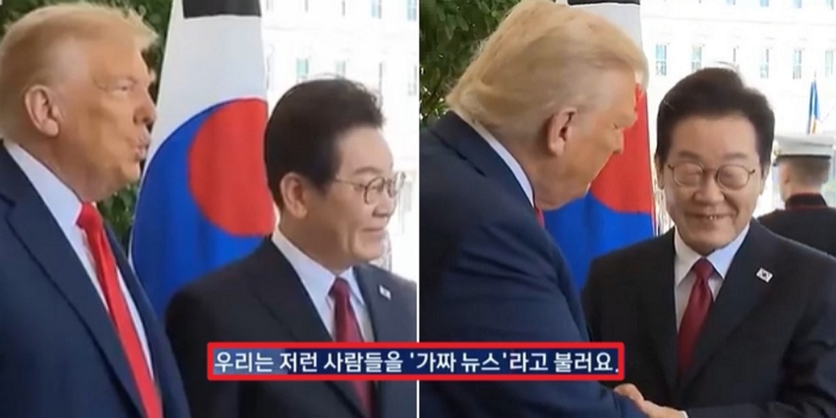하지만 이재명 대통령을 맞이한 트럼프 대통령은 정작 현장에서 이 글에 대한 질문이 나오자 이 대통령에게 "가짜 뉴스"라며 귓속말을 했습니다.