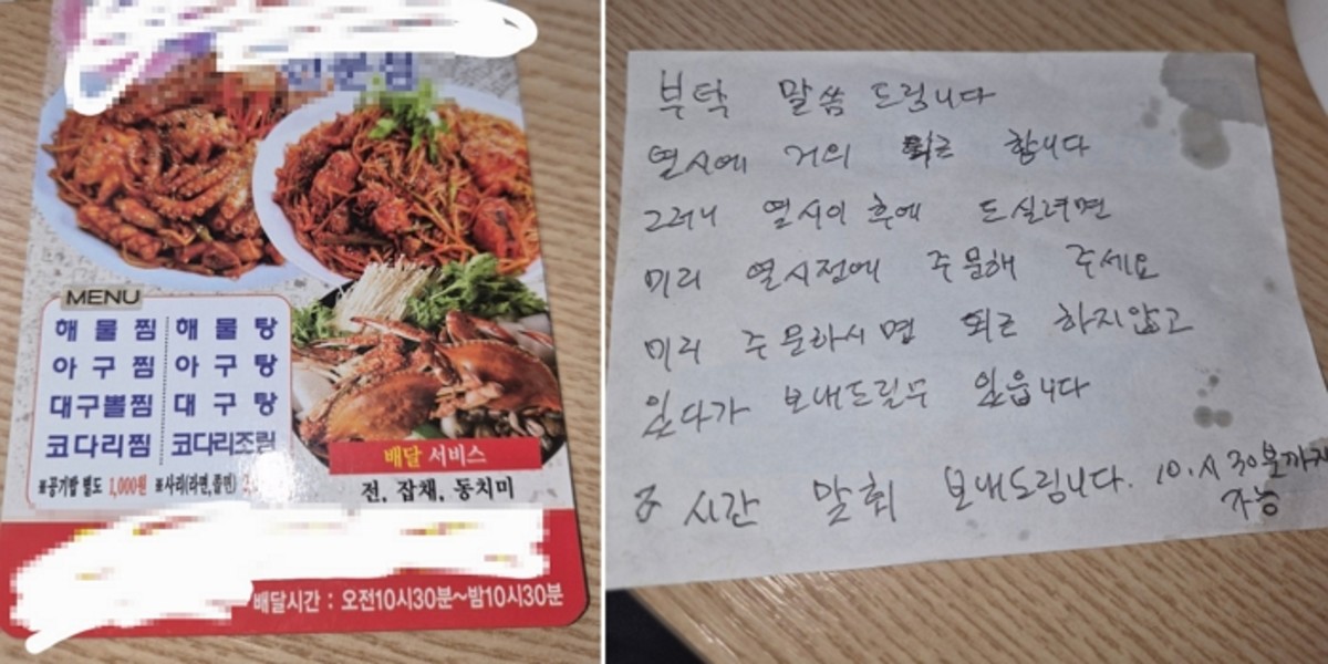 마감 30분전 주문한 손님에 사장님 써 보낸 '메모' 내용