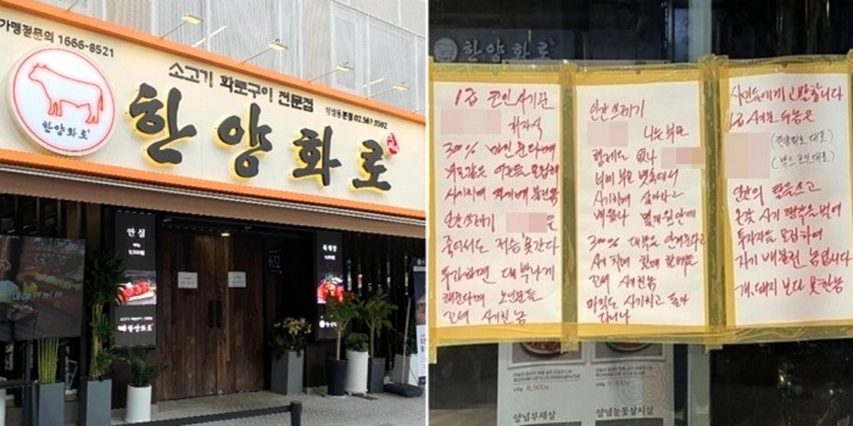 한양화로 가맹점 앞에 붙은 대자보 / 온라인 커뮤니티
