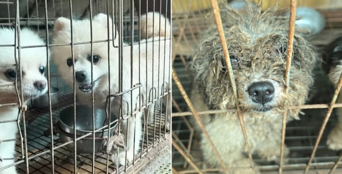 구조된 개들은 오물과 털이 뒤엉킨 뜬장에서 생활하고 있었으며 일부는 임신 상태였던 것으로 확인되었습니다.