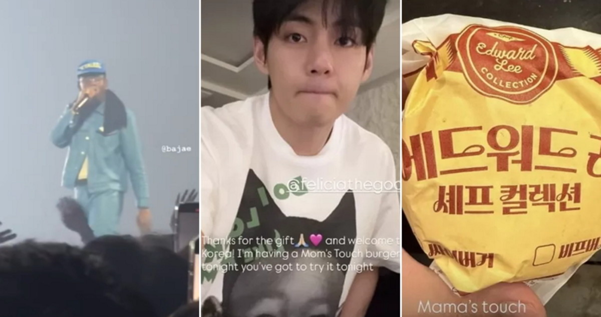 이날 공연장에는 방탄소년단 뷔, RM, 제이홉이 함께 자리했는데요. 뷔는 타일러의 '맘스터치 찬양'에 크게 웃어보였습니다. 이후 자신의 인스타그램 스토리에 "오늘 밤 맘스터치 버거를 먹을 거다. 꼭 드셔보라"는 글과 함께 실제 버거 인증샷을 남기며 더욱 화제를 모았습니다.