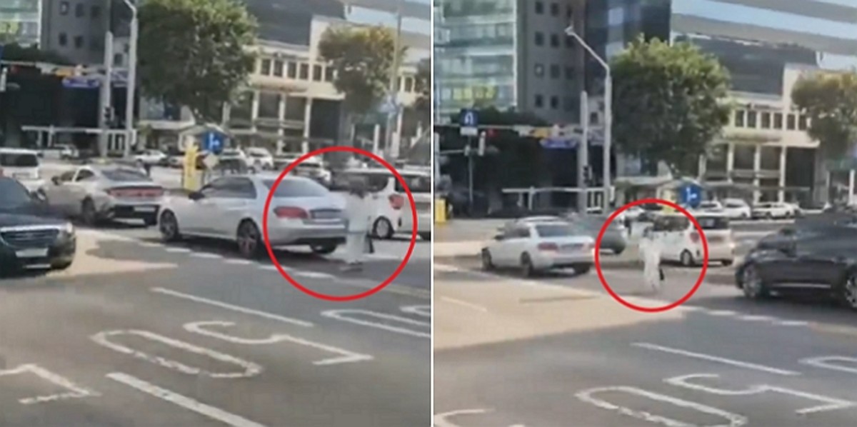 차도에서 자동차처럼 행동한 여성 보행자, 온라인서 화제