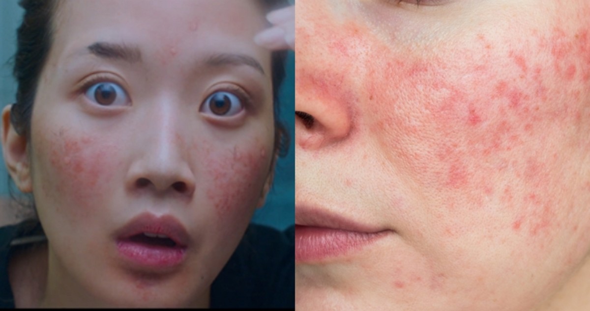 흔히들 주인공이 여드름 피부를 가졌기 때문이라고 오해하기 쉽지만 주인공처럼 빨간 얼굴이 반복되고 여드름 같은 우둘투둘한 발진이 올라온다면 바로 '주사'라는 피부질환을 의심해보아야 합니다.