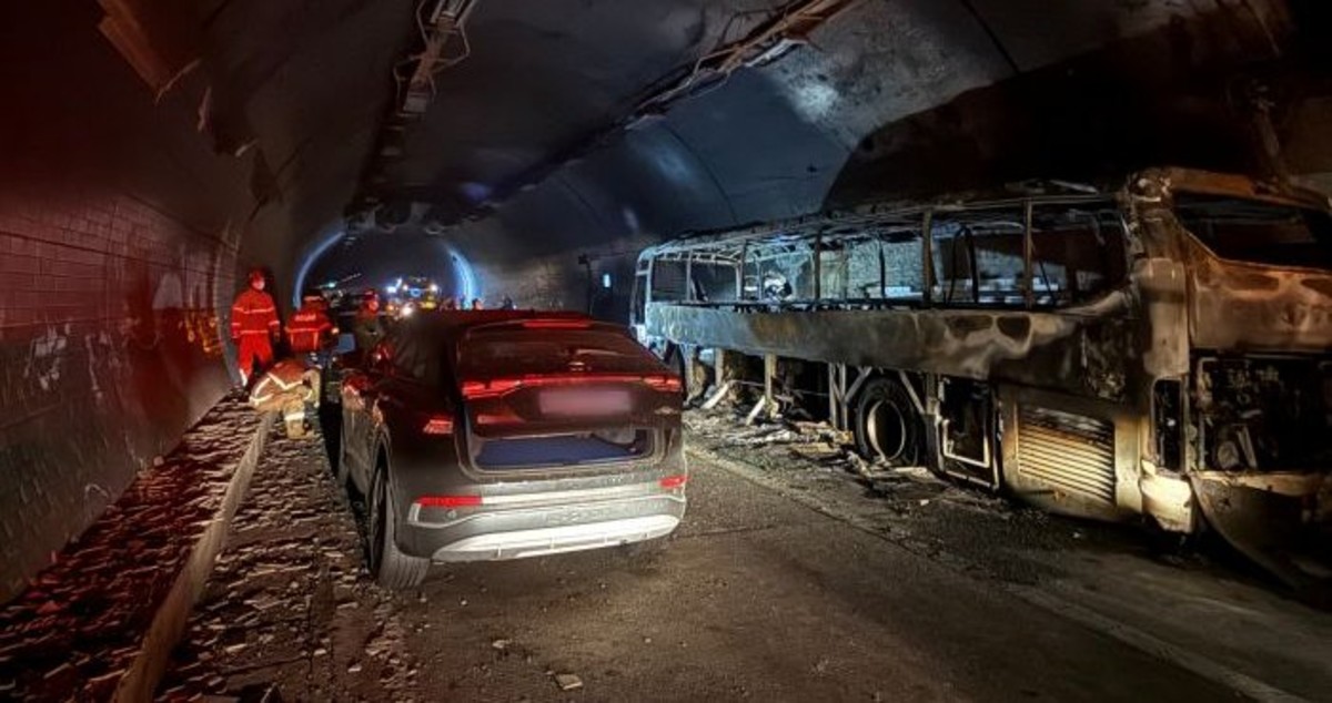 영동고속도로 강릉 방향 마성터널에서 시외버스 화재 사고가 발생해 버스 승객과 차량 탑승자들이 긴급 대피했습니다.