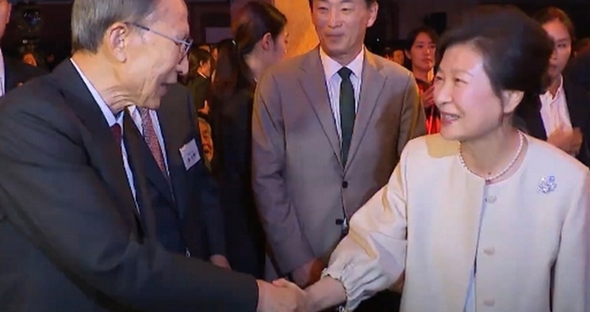 보도에 따르면 이날 행사장에서는 2013년 2월 25일 박 전 대통령 취임식 이후 처음으로 이명박 전 대통령과 박근혜 전 대통령이 한자리에서 만나 손을 맞잡는 역사적인 순간이 연출됐습니다.