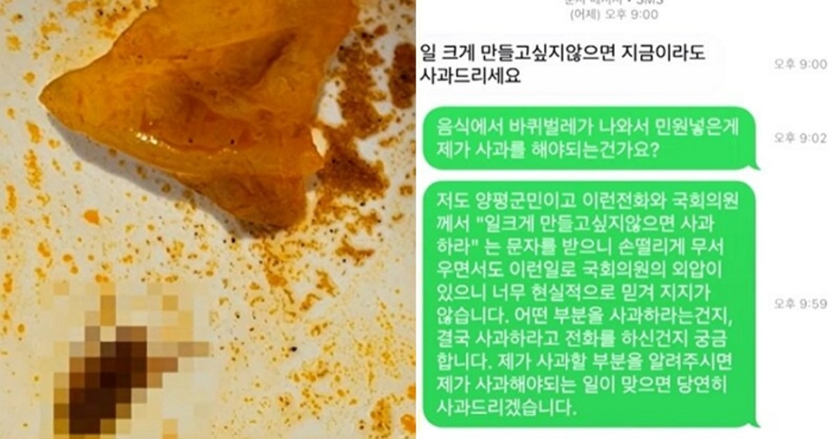 경기도 양평군에서 배달음식에서 바퀴벌레가 발견된 사건이 군의회 의장의 개입으로 논란이 되고 있습니다.