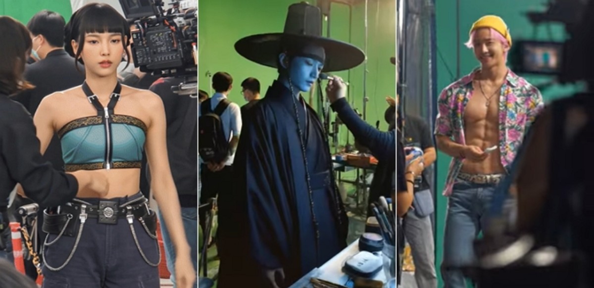 이 영상은 케데헌의 주인공 그룹인 '헌트릭스'와 '사자보이즈' 캐릭터들을 완벽하게 재현한 배우들이 촬영을 준비하는 모습을 담고 있었습니다.