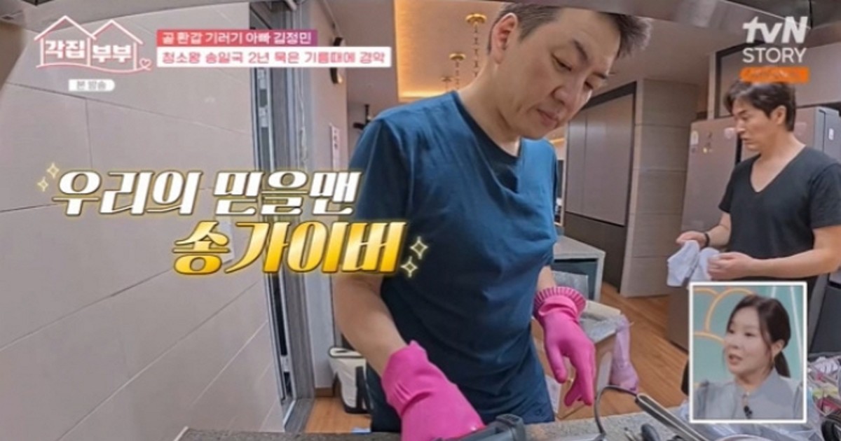 지난 18일 방송된 tvN STORY '각집부부'에서는 송일국이 김정민의 집을 방문해 청소와 수리를 도와주는 장면이 그려졌습니다.
