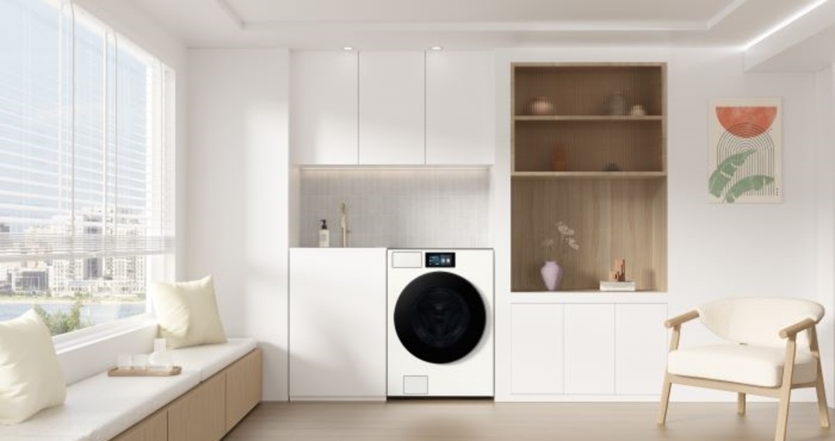 삼성전자가 7형 'AI홈' 터치스크린을 탑재하고 한층 강화된 AI 기능도 제공하는 2025년형 '비스포크 AI 세탁기'와 '비스포크 AI 건조기' 신제품을 출시한다고 17일 밝혔다. 사진은 2025년형 '비스포크 AI 세탁기' 라이프스타일 이미지. (삼성전자 제공. 재판매 및 DB 금지) 2025.7.17/뉴스1