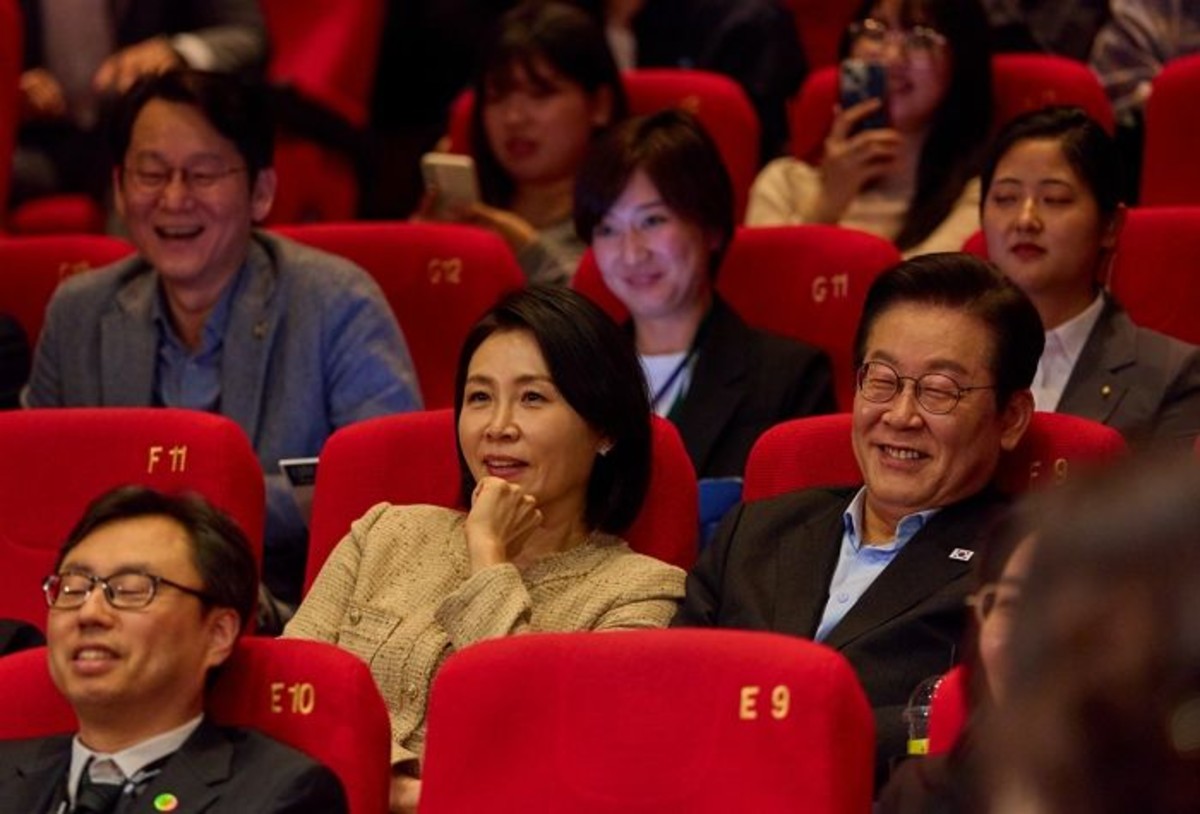 이재명 대통령과 김혜경 여사가 20일 부산 해운대구 영화의전당에서 부산국제영화제 공식상영작 '극장의 시간들' 관람하고 있다. (대통령실 제공. 재판매 및 DB 금지) 2025.9.20/뉴스1
