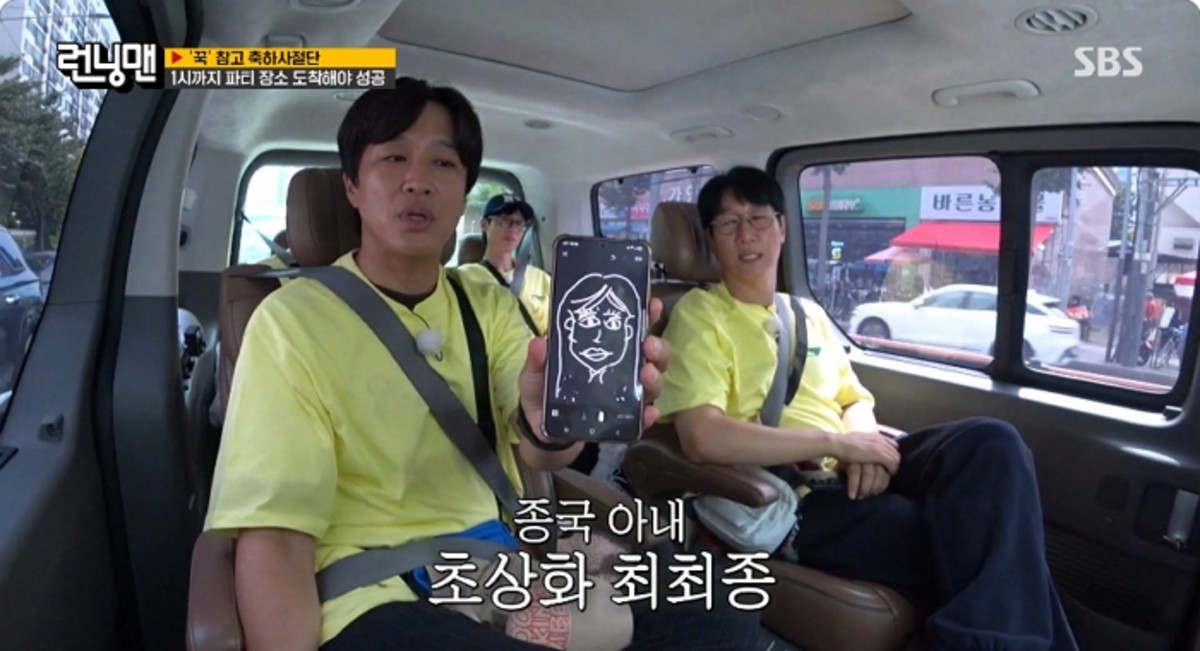 방송 중 차태현은 멤버들과 함께 이동하는 차 안에서 갑자기 김종국 아내의 얼굴을 그리기 시작했습니다.