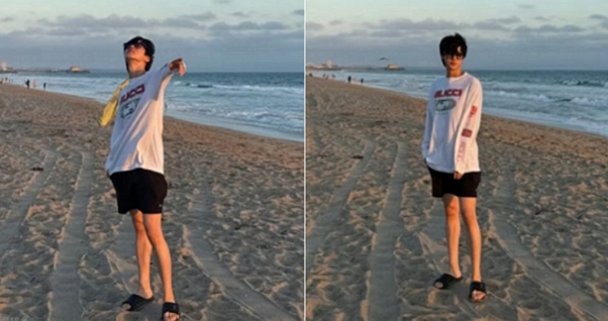 셀카 요청에 응답한 진, 미국 해변 사진으로 팬들 설레게 해