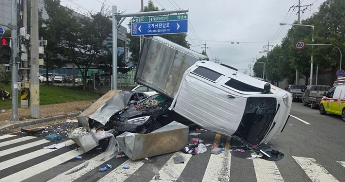 대구 달성군 산업단지 교차로 4중 추돌사고, 4명 부상