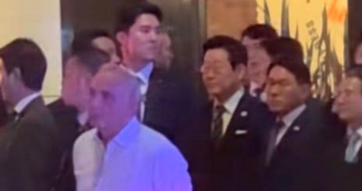 이후 이 대통령과 수행단은 동선을 확보해 빠른 걸음으로 이동했고, 약 5분 후 트럼프 대통령의 차량 행렬이 지나갔습니다.
