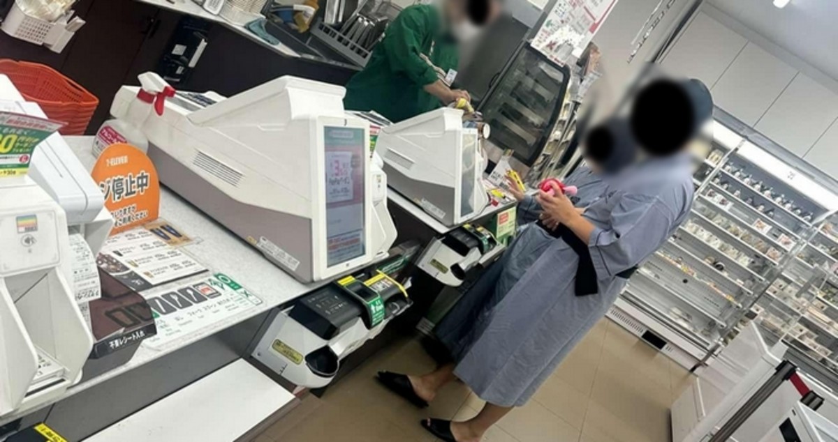 한국인 커플, 호텔 가운 차림으로 일본 편의점 방문