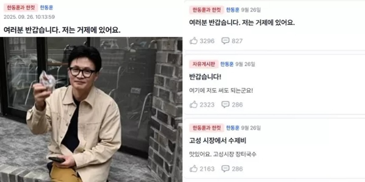 한 전 대표는 직접 플랫폼에 "여러분 반갑습니다. 저는 거제에 있어요", "고성시장에서 수제비 맛있어요, 장터 국수 추천합니다", "'아무나 보수를 하고 싶게 하는'이라는 말 멋지네요. 모두 아보하 하시죠" 등의 글을 올리며 시민들과의 직접적인 소통에 나서고 있습니다.
