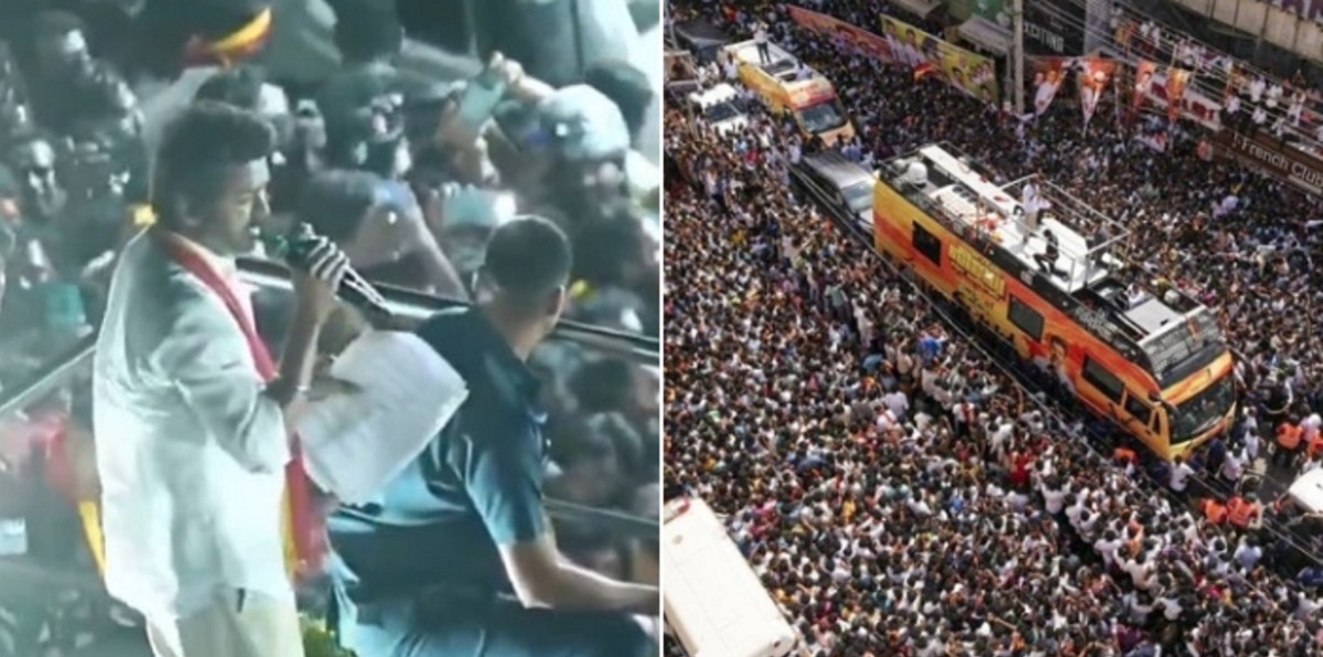 인기 배우 출신 정치인 조셉 비제이 찬드라세카르(51)의 유세 행사에 인파가 몰린 모습 / X 캡쳐