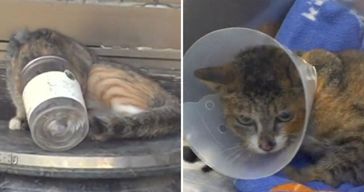 긴급 출동한 구조팀의 신속한 작전 끝에 어미 고양이는 마침내 구조됐고 플라스틱 통이 제거되자 비로소 편안한 표정을 지었습니다.