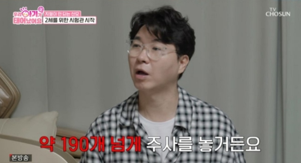 박수홍은 "귀하다"라며 공감을 표시한 후, "시험관 1차 시도할 때 아내에게 시험관 시술 주사를 놓은 걸 기억하기에는 거의 190개 넘게 주사를 놓는다"고 밝혔습니다.
