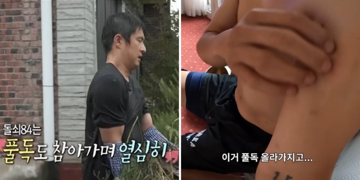 그는 객실에서 "얼마 전에 풀을 베다가 풀독이 잔뜩 올랐는데 어머니가 약을 발라주셨다"라고 설명했는데요. 이 풀독은 앞서 박나래의 조부모 집을 정리하며 잡초를 제거해주다가 생긴 것으로 보입니다.
