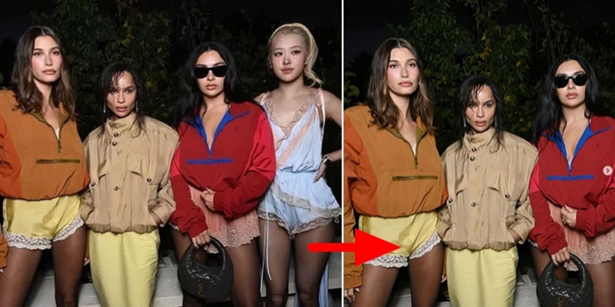 원본에는 로제를 비롯해 모델 헤일리 비버, 생 로랑 앰버서더이자 배우인 조이 크라비츠, 인플루언서 데비 한까지 총 4명이 함께 있었습니다.
