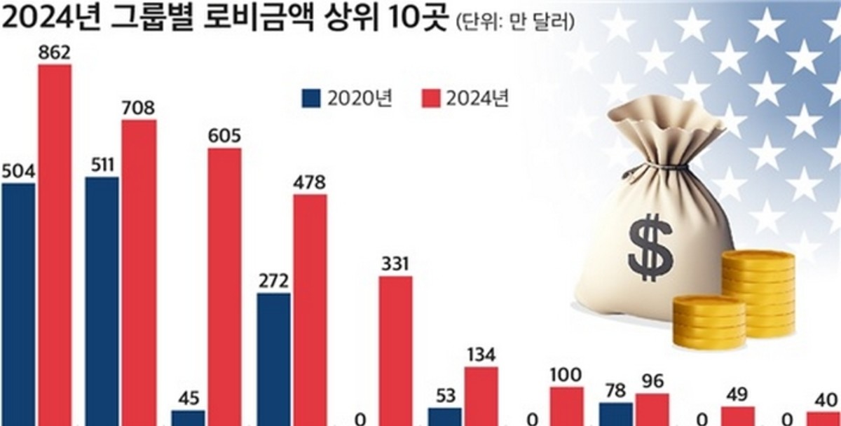 삼성에 이어 SK(708만 달러), 한화(605만 달러), 현대차(478만 달러), 쿠팡Inc(331만 달러), LG(134만 달러), 영풍(100만 달러) 순으로 로비 금액이 많았습니다.