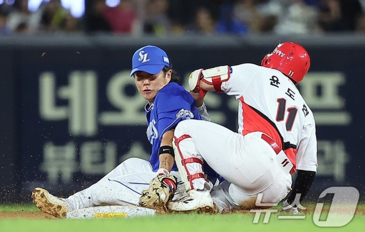 2루에서 세이프 되는 윤도현 - 뉴스1