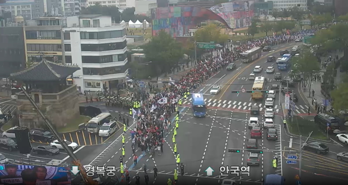 자유대학과 부정선거방지대 등 보수단체들은 이날 오후 2시 40분경 지하철 1·4호선 동대문역에서 출발해 종로구 광화문 방향으로 행진을 벌였습니다.