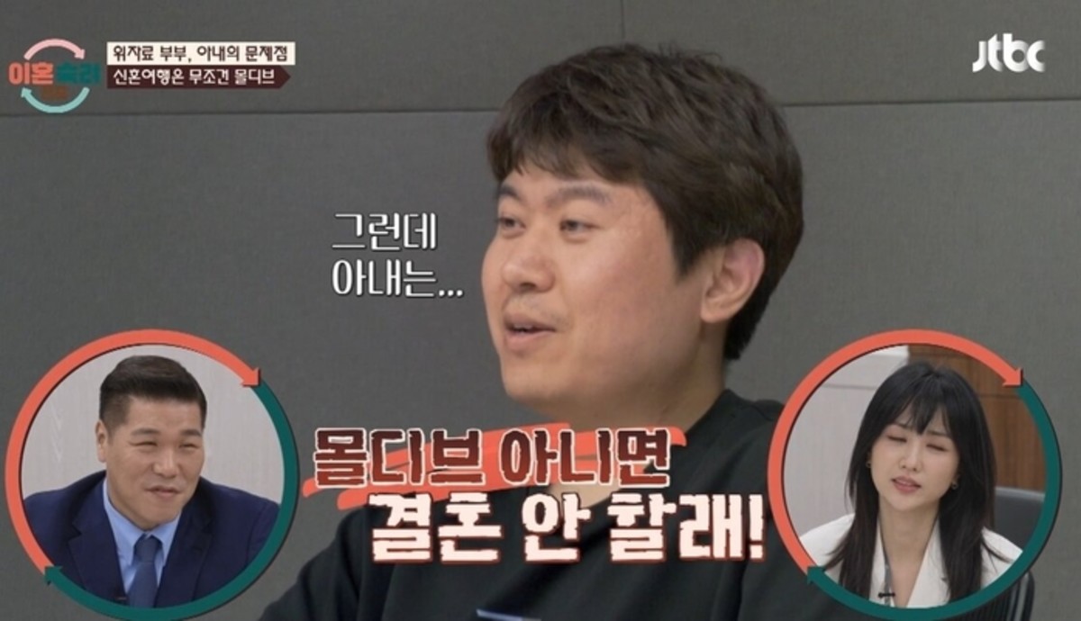 남편은 "아내가 신혼여행지가 몰디브가 아니면 결혼 안 한다고 했다"며 당시 경제적 부담이 컸던 상황을 회상했습니다.