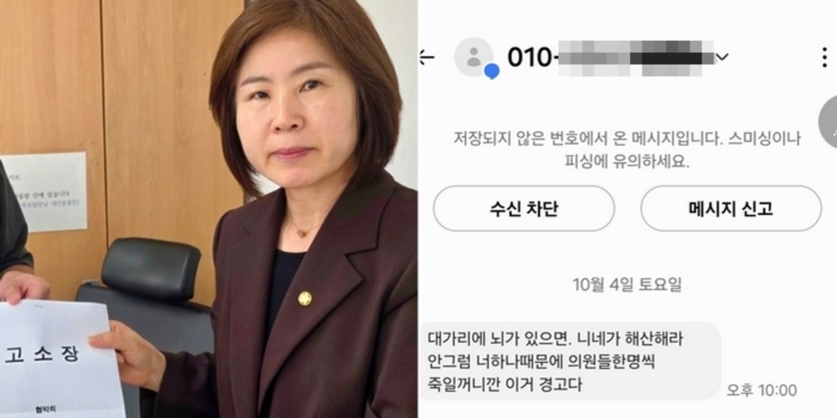 국민의힘 김미애 의원이 '해산하지 않으면 죽이겠다'는 내용의 문자 메시지를 받아 발신자를 형사 고소했습니다.