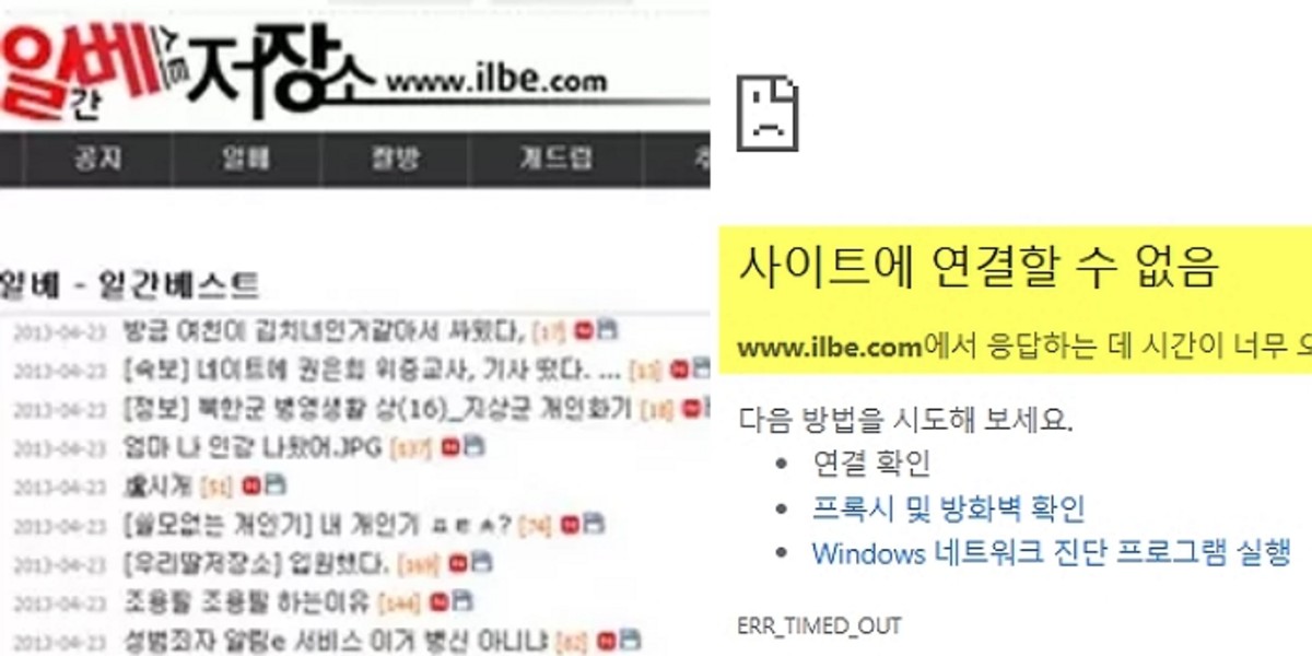 10일 새벽부터 일베 접속 불가... 정부 조치 여부 확인 안 돼