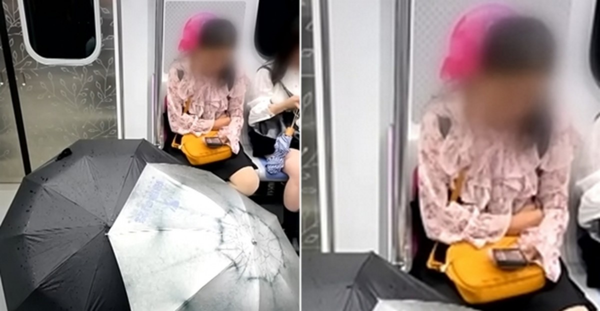 서울 지하철에서 중국인으로 추정되는 승객이 젖은 우산을 객차 바닥에 펼쳐놓고 말리는 모습이 목격되면서 시민들의 공분을 사고 있습니다.