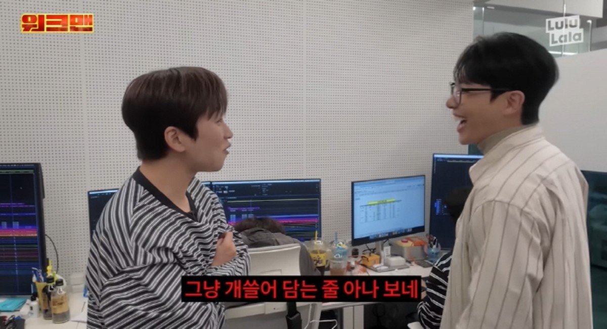 이준보다 먼저 '워크맨' 편집실에 도착해 있던 딘딘은 제작진에게 에너지드링크를 선물하겠다고 제안했습니다. 이에 이준은 "저도 보내드리겠다"며 "돈으로 드릴까요? 얼마 줄까요?"라고 물었습니다.