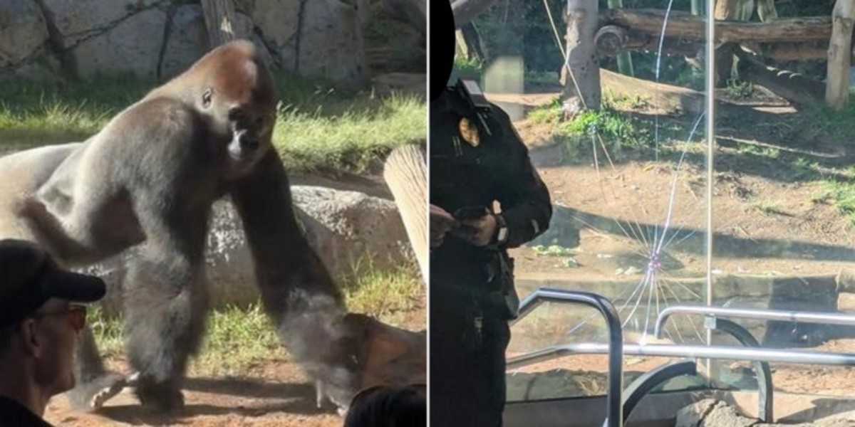 샌디에이고 동물원에서 고릴라 한 마리가 유리창을 깨는 충격적인 사건이 발생했습니다.