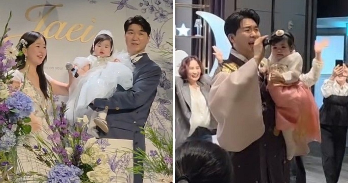 방송인 박수홍과 김다예 부부의 딸 재이 양의 돌잔치 현장이 공개되어 화제를 모으고 있습니다.