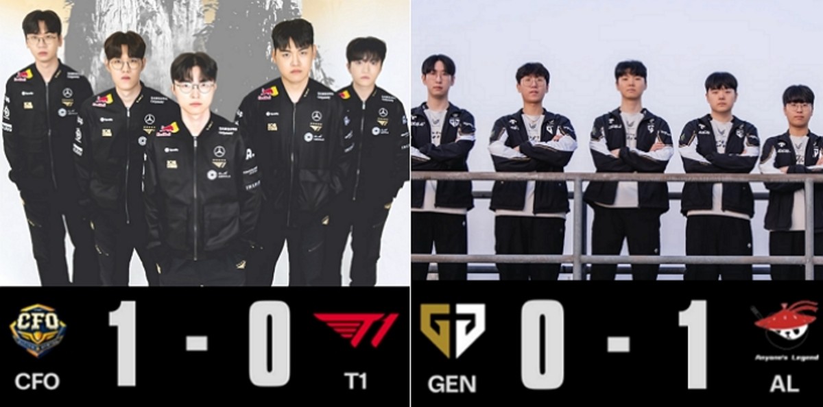 T1은 LCP 소속 CFO(CTBC Flying Oyster)와의 대결에서, 젠지는 LPL의 애니원즈 레전드(AL)와의 경기에서 각각 패배를 기록하며 1승 1패 기록으로 내려오게 되었습니다.