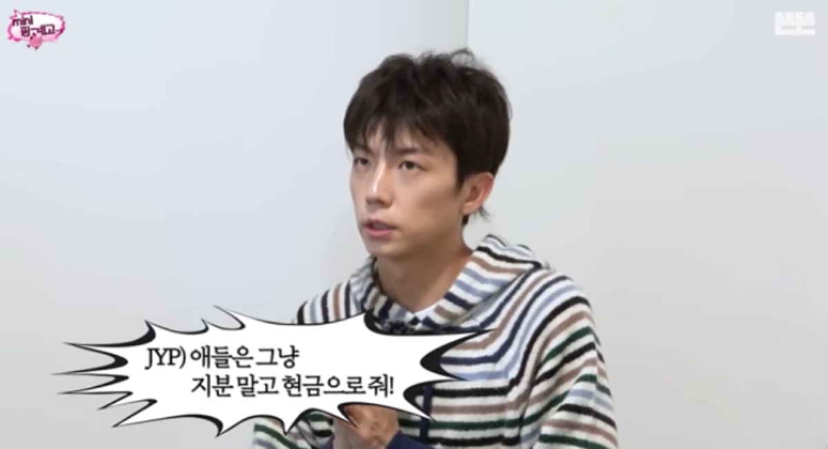 당시 박진영 대표가 "이건 선택권을 주는 게 아니라 회사에 투자하라는 느낌으로 보일 수 있다"며 며칠 후 "애들은 그냥 계약금으로 주도록 했다"고 말했던 일화를 공개했습니다.
