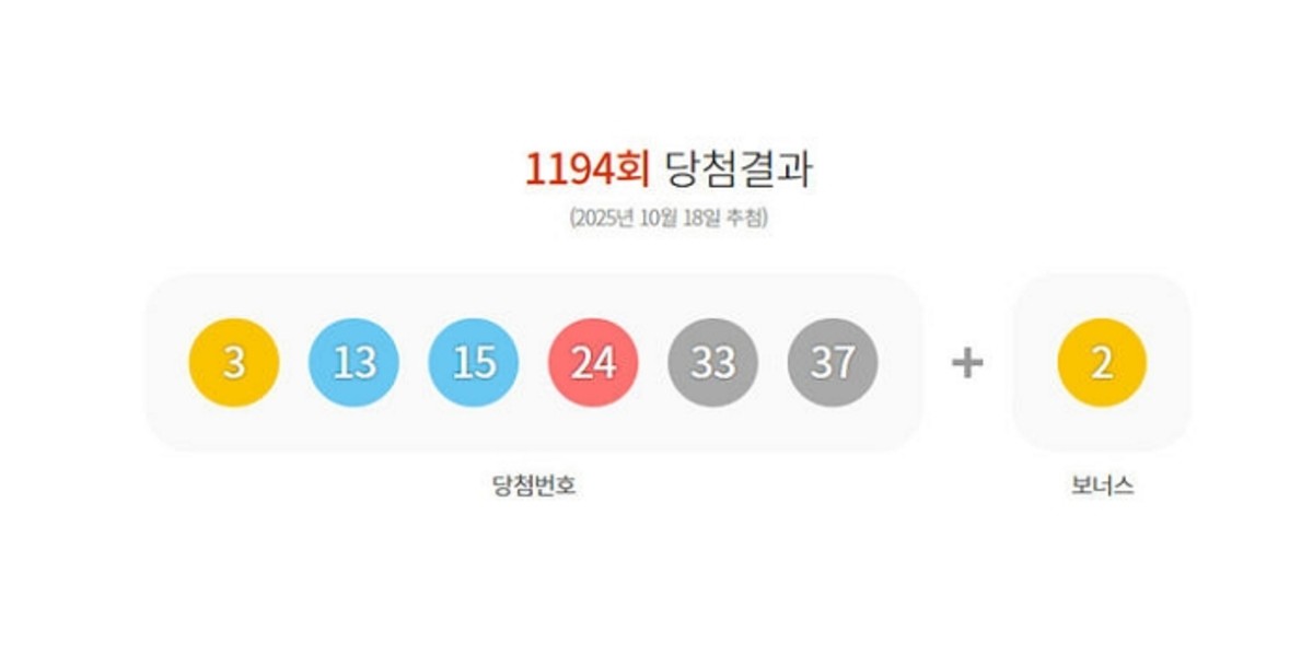 지난 18일 추첨된 제1194회 로또복권에서 1등 당첨번호가 발표되었습니다. 당첨번호는 '3·13·15·24·33·37'이며, 보너스 번호는 '2'로 확정되었습니다.